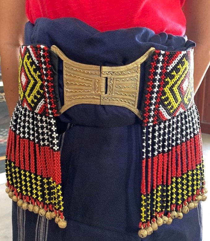 Beaded belt with brass buckles ang brass bells.  This can be worn With complete Tboli attire (Malong, embroidery blouse)  during festivals , weddings and other special occasions…