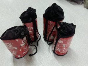 Drink bottle holder with drawstring lock with lining and insulation to maintain cool temperature.