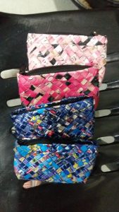 change purse made from recycled woven chips wrappers/ ideal to use for mobile, make up or passport wallet