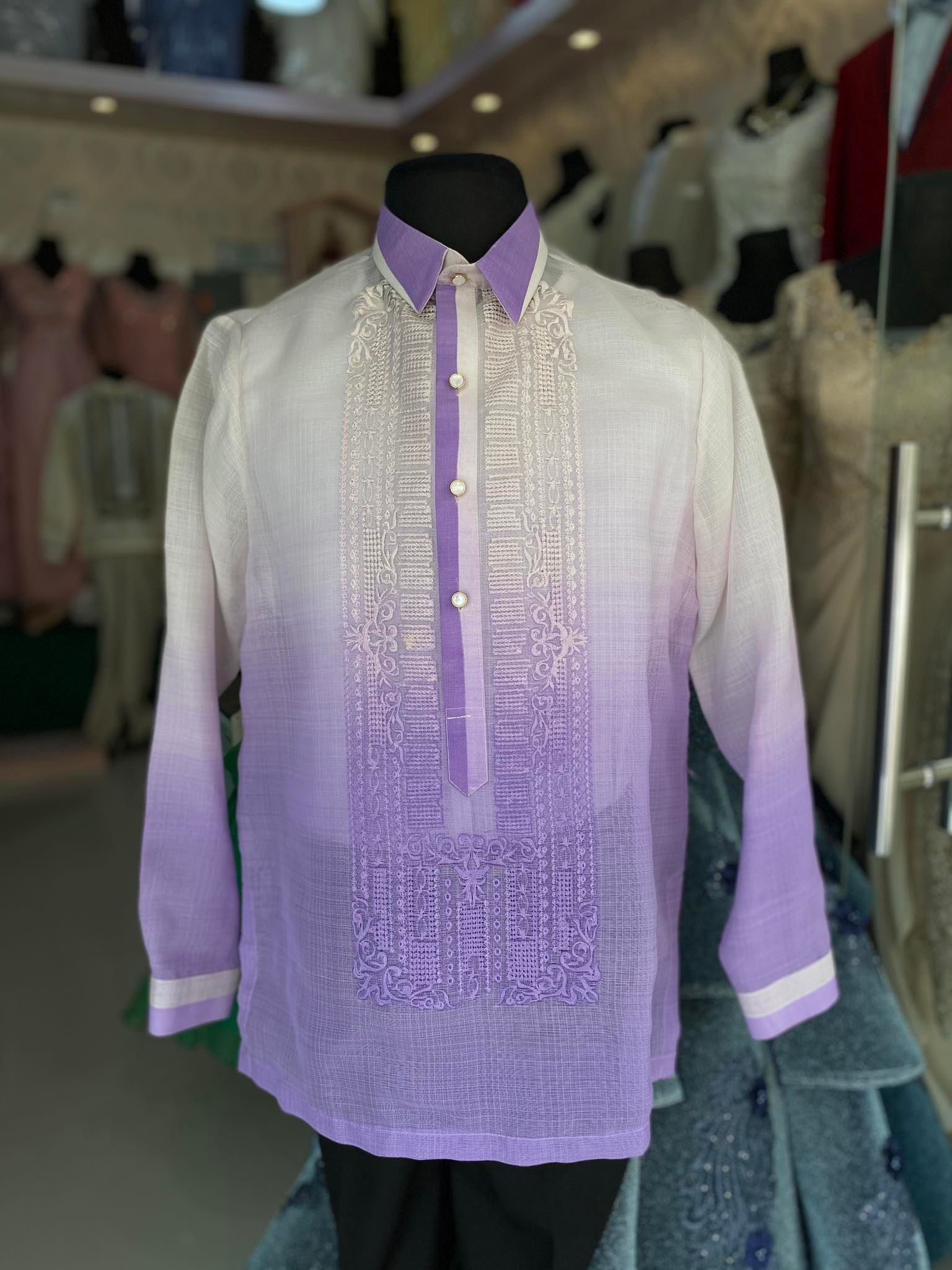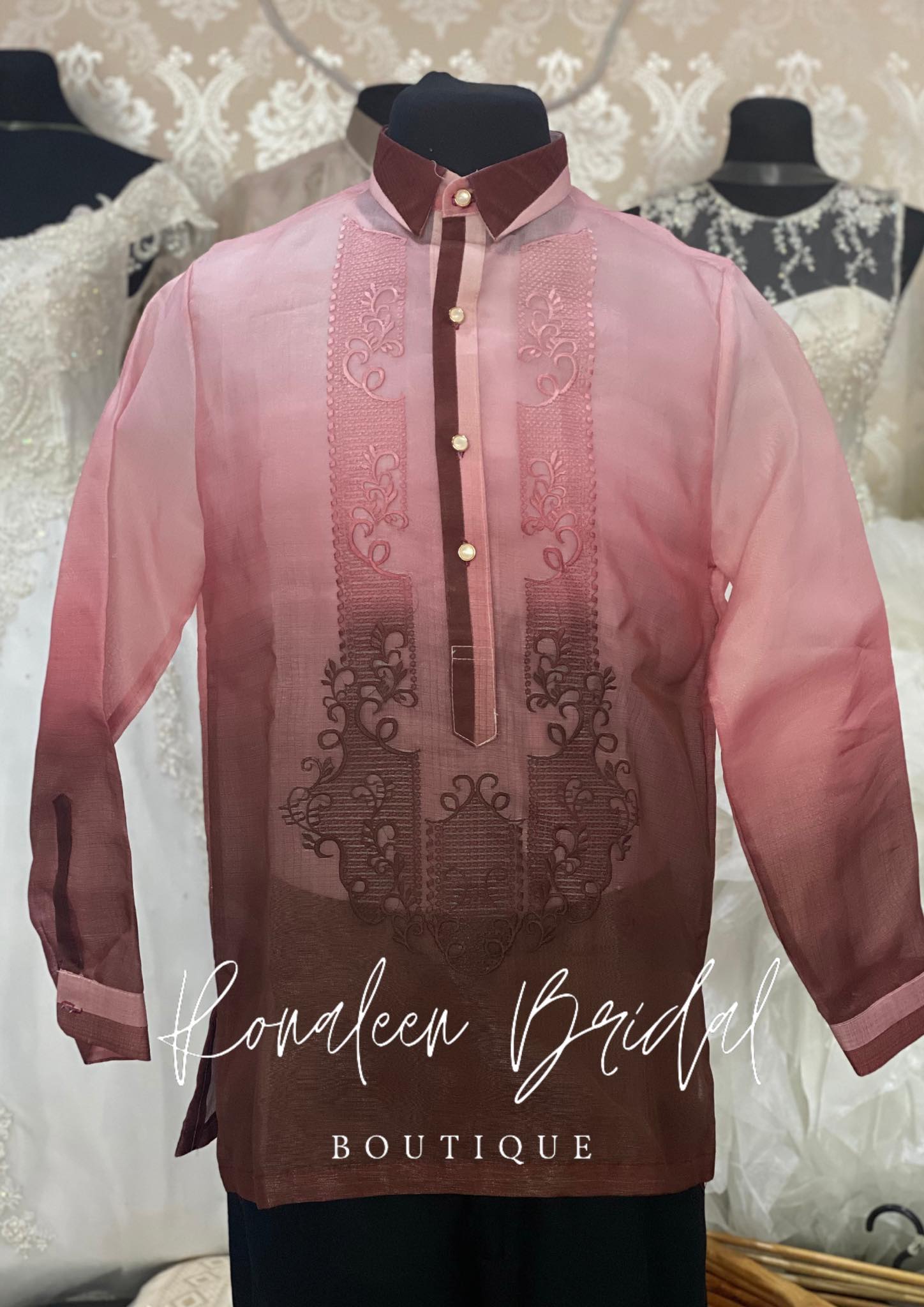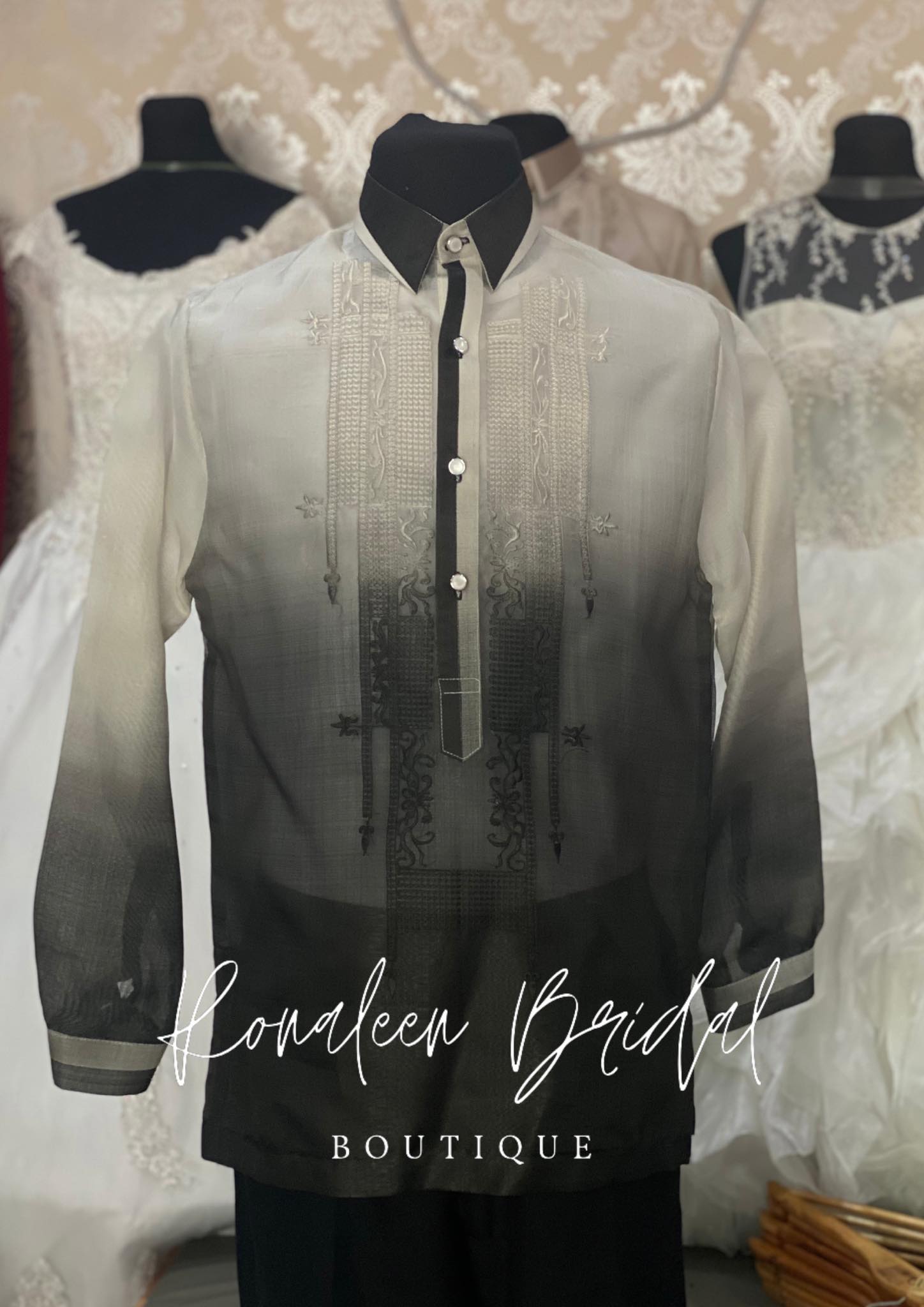 Monochromatic Barong made of Jusi cloth with embroider