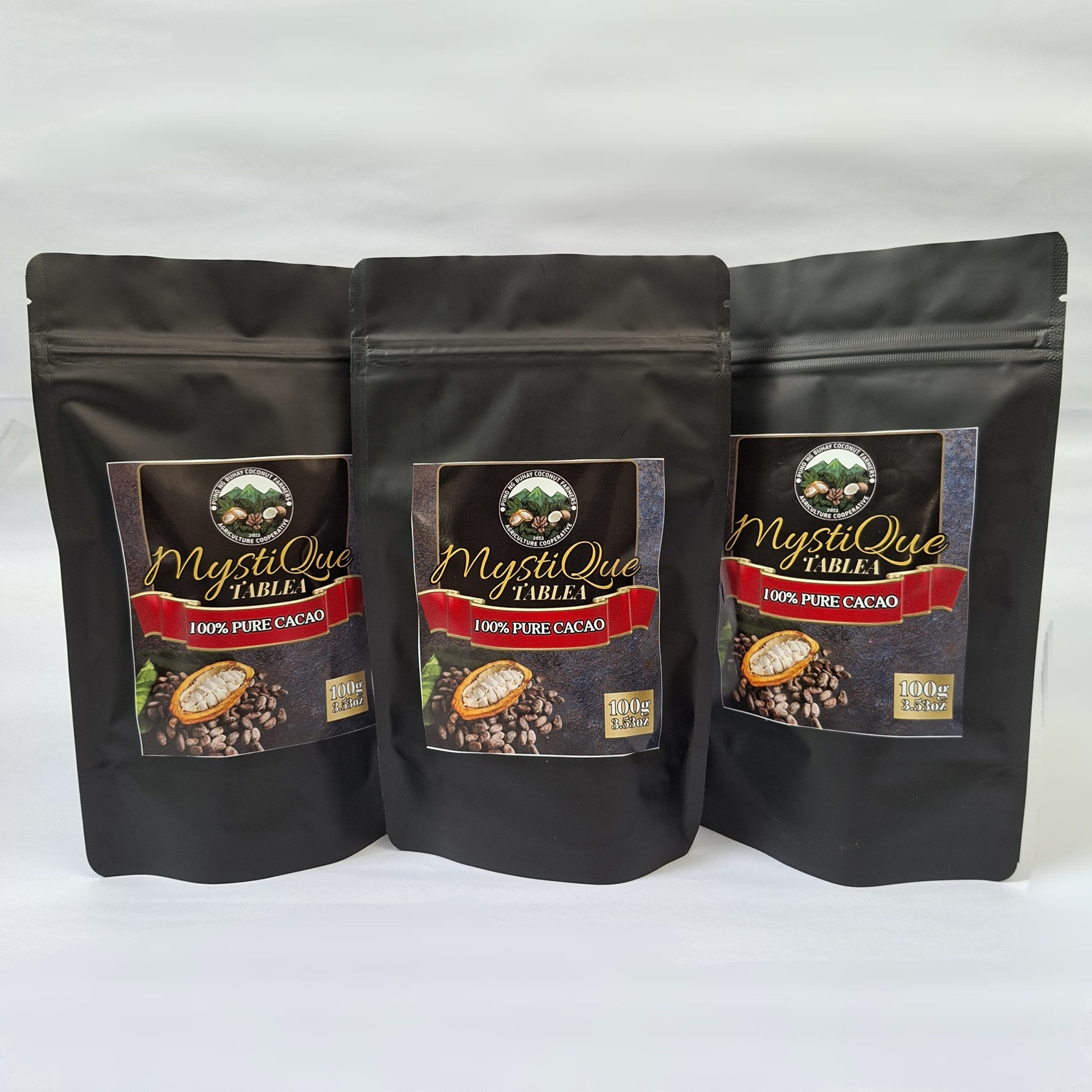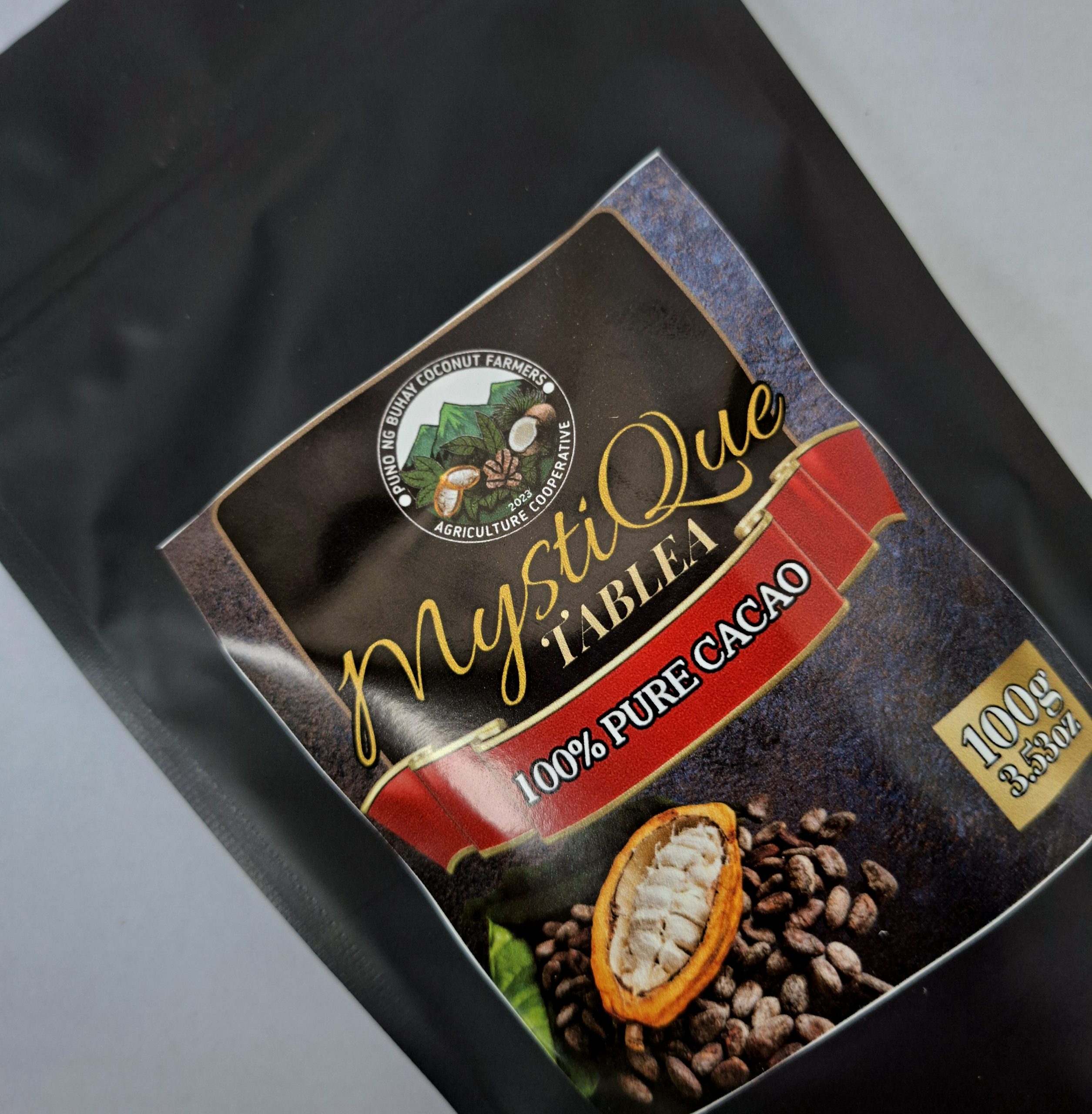 Crafted from 100% pure, locally grown cacao beans from Sariaya, Quezon, our tablea is carefully fermented, sun-dried, roasted, and ground to preserve its deep chocolate flavor and natural aroma. Free from additives and preservative.