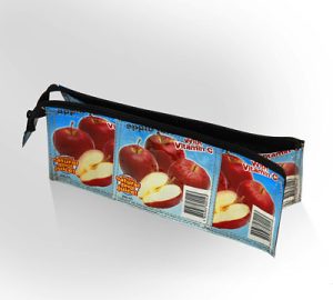 made from recycled foil pouches with zipper closure