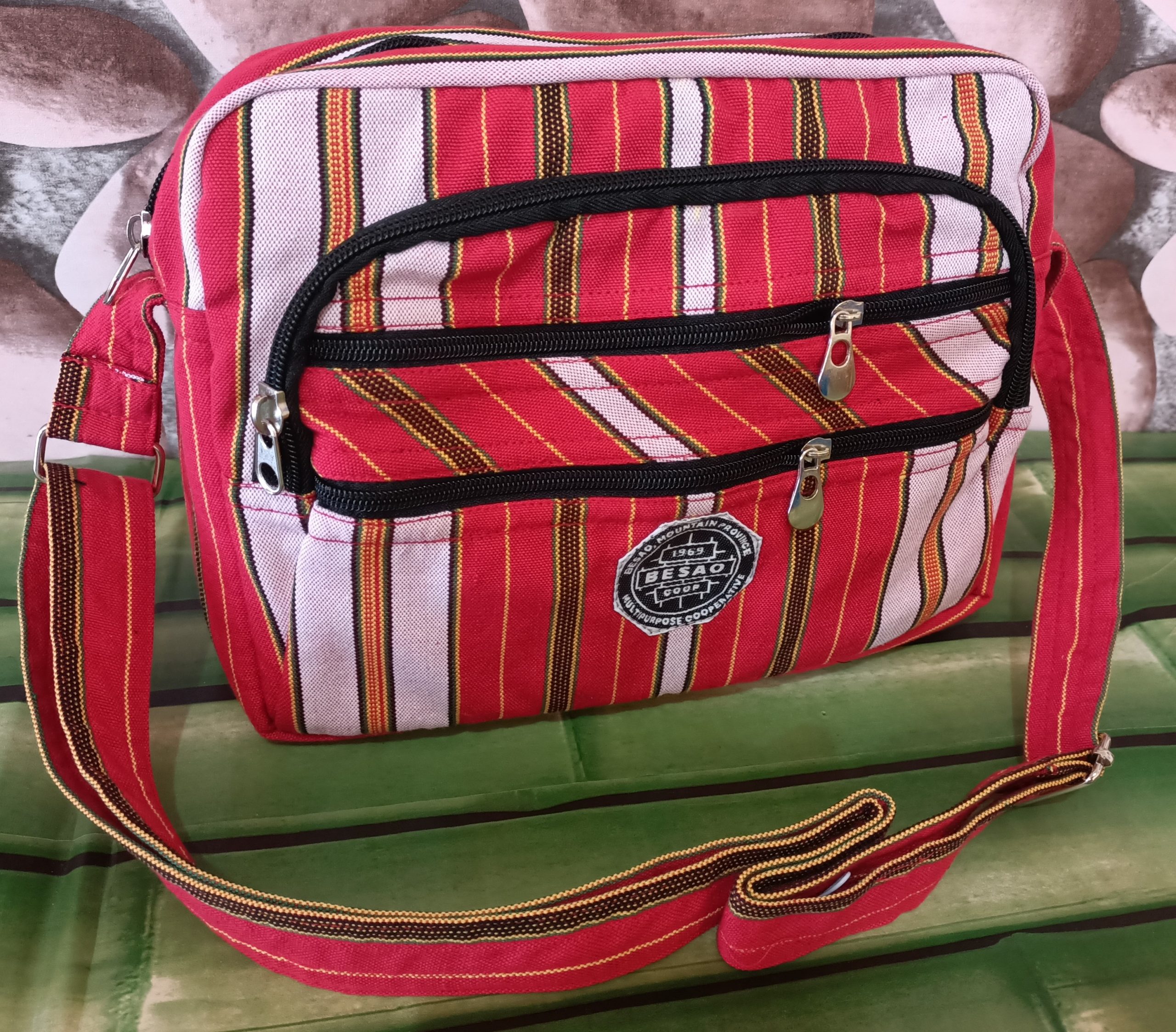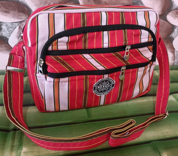 woven sling bag. length 10.5″ x height 8.5″ x 3″ width