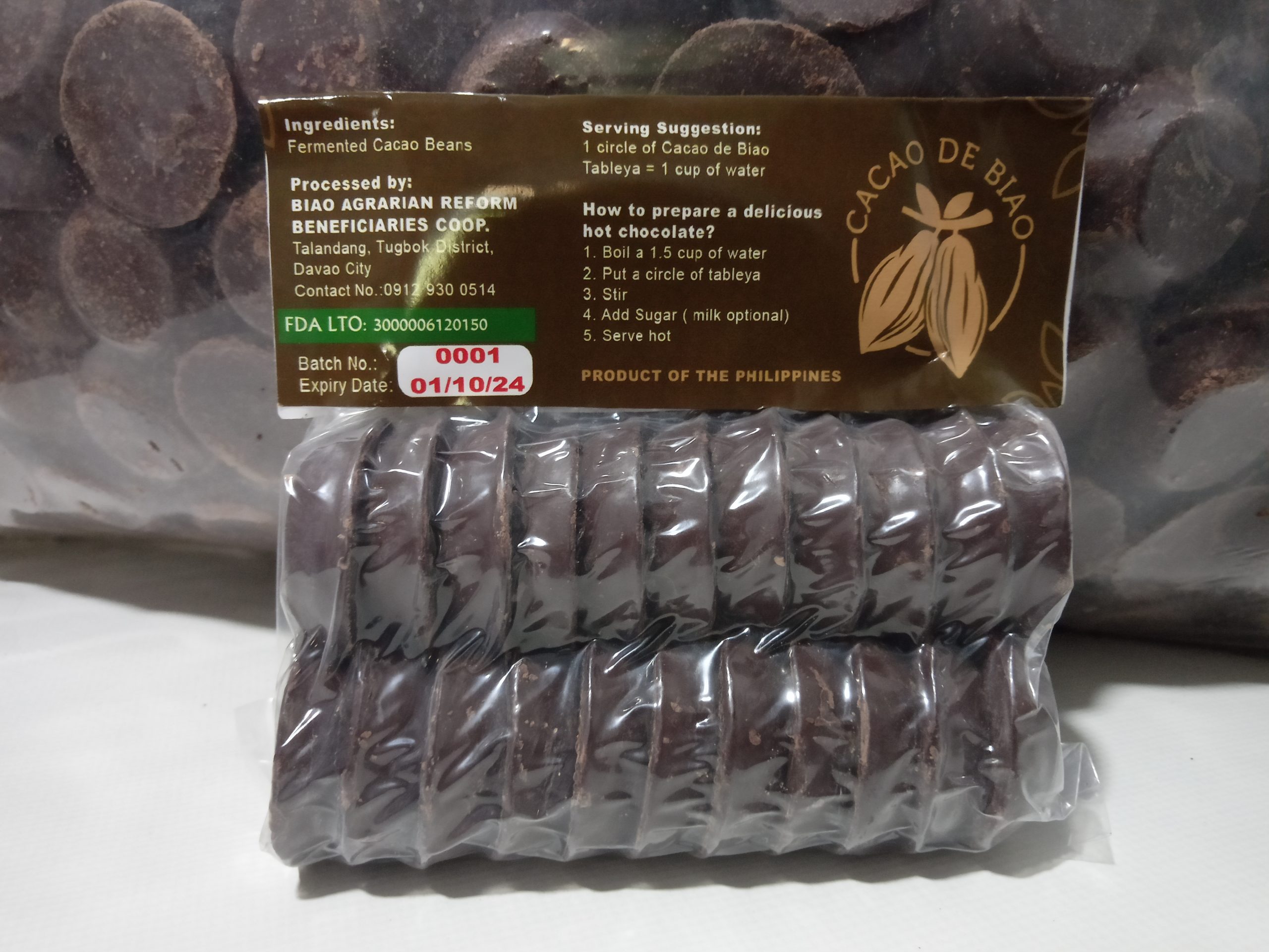 Made from 100% cacao fermented beans.
